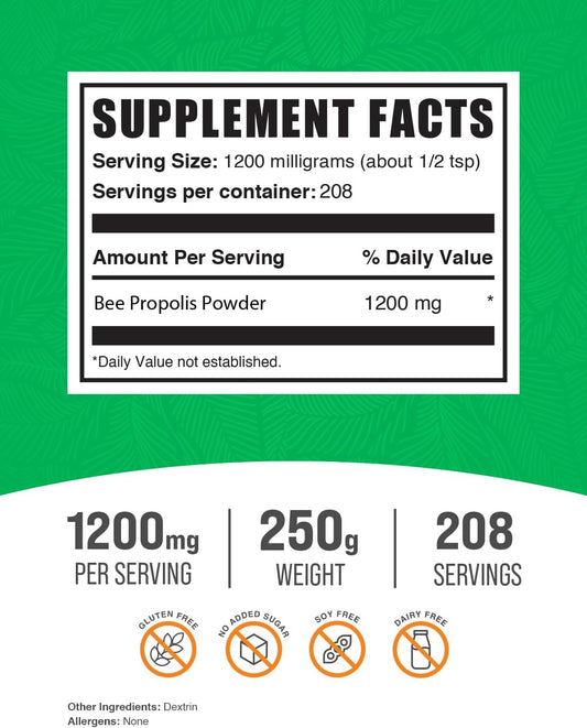 BulkSupplements.com Bee Propolis Powder - Immune Support Supplement, 1200mg per Serving, 250g - Natural Antioxidant, Gluten Free - Pack of 1