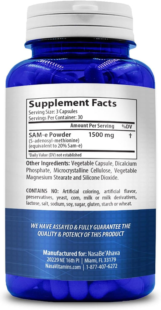 Pure SAM-e 1500mg Capsules for Brain Function - 90 Capsules - Made in USA by NasaBeahava