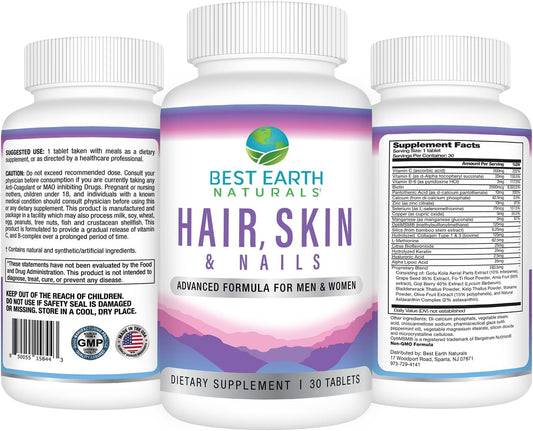Top Rated Natural Hair, Skin, and Nails Supplement with Biotin, Collagen, Vitamins for Healthy Hair, Glowing Skin, Strong Nails