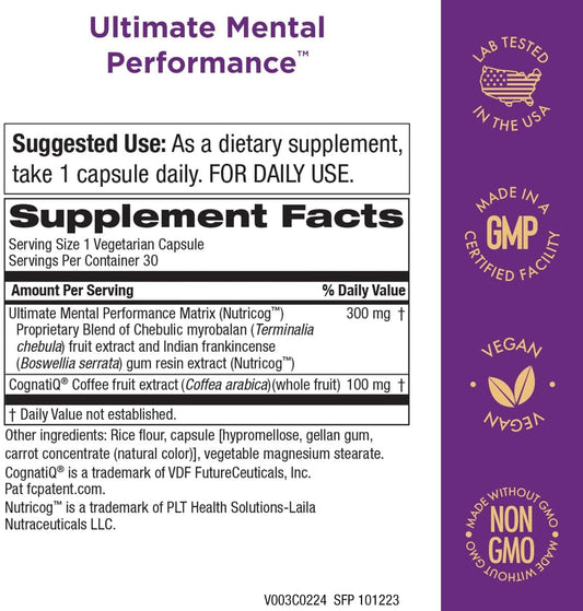 Plant-Based Nootropic for Memory Recall, Mental Focus & More - Vegan & Non-GMO - 30 Veggie Capsules