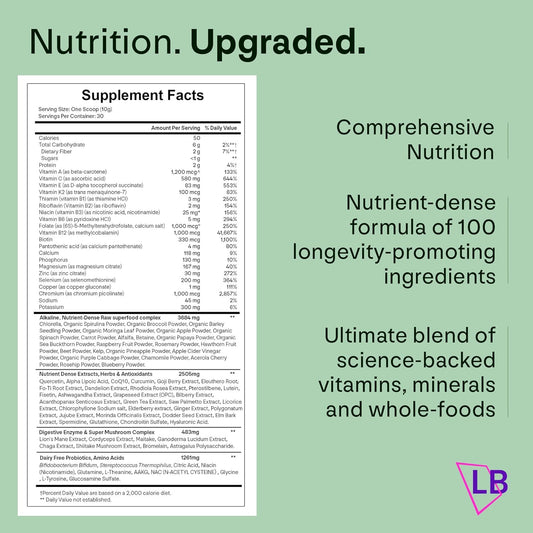 Premium Longevity Box Super Greens Powder - 100 Ingredients | 300g, 30 Servings | Vegan & Vegetarian | Rich in Vitamins & Minerals