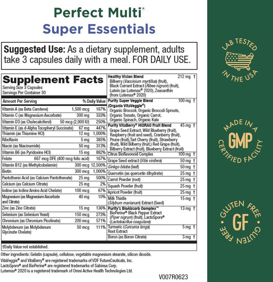 Purity Products Perfect Multi Super Essentials - Multivitamin with Fruits and Vegetables for Healthy Vision - 90 Capsules