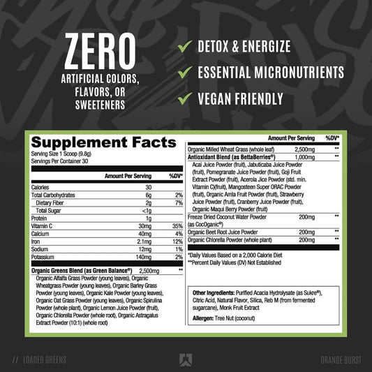 RYSE Up Loaded Greens Orange Burst Supplements - 30 Servings