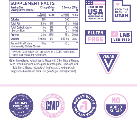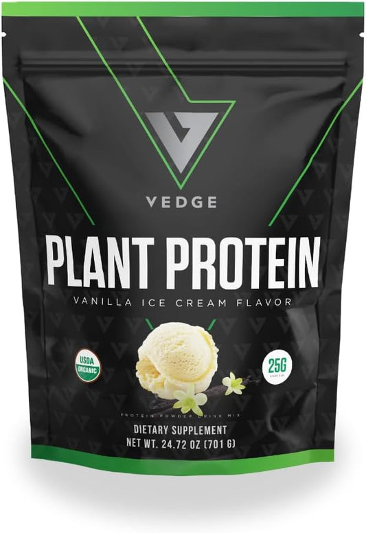 Organic Vanilla Ice Cream Plant Protein Powder - Vegan, Gluten Free, Non Dairy - USDA Certified Organic (20 Servings)