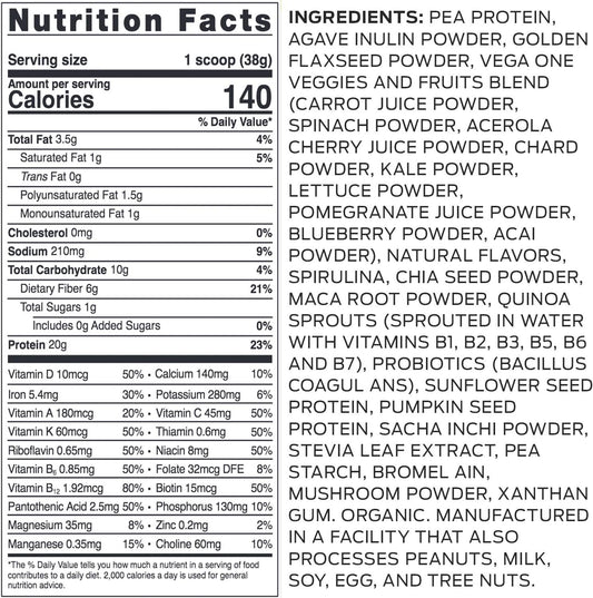 Vega Organic All-in-One Shake 26.9 OZ - Plant-Based Protein Powder