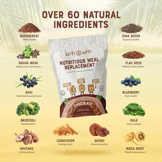 Chocolate Vegan Meal Replacement Powder with 23g Plant-Based Protein - Superfood, Greens, Prebiotics, Vitamins, Minerals - Dairy&Gluten Free - All-in-One Shake for Women & Men (15 Servings)