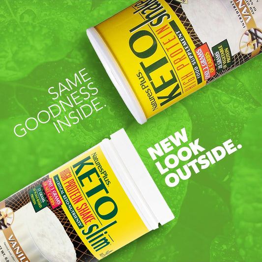 Natures Plus KETOSlim Vanilla Shake: Vegetarian Protein Powder for Keto & Diabetic Lifestyles - Gluten-Free Meal Replacement, Low Carb Plant-Based - 11 Servings