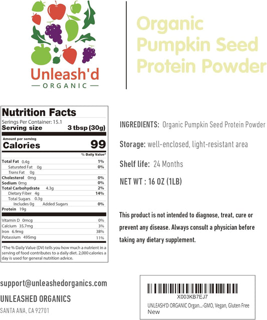 Organic Pumpkin Seed Protein Powder 16 oz - Boosts Immune System, Plant-Based, Non-GMO, Vegan, No Artificial Sweeteners