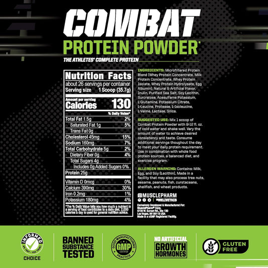 Muscle Pharm Combat Protein Powder, Vanilla Flavor, 2 lb, 26 Servings, Gluten Free, 5 Protein Sources Including Whey Protein Isolate & Egg Albumin for Effective Workouts
