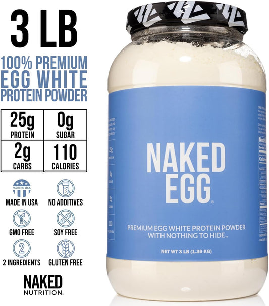 Naked Nutrition Non-GMO Egg White Protein Powder - Unflavored, Paleo, Dairy Free - 3LB, 25g Protein, 44 Servings