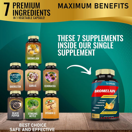 6in1 Bromelain 500mg Supplement - 1000mg per Serving - 210 Capsules with Digestive Health Blend - Quercetin, Ginger, Turmeric, Papaya - Supports Overall Health, Digestion & Immune SystemVendor:DEDICADRegular price $119.59 AUDRegular priceUnit price / per-
