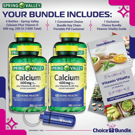 Spring Valley Calcium and Vitamin D Tablets 600 mg 250 Ct Bundle with Guide and Pill ContainerVendor:CHOICE BUNDLERegular price $183.88 AUDRegular priceUnit price / per-