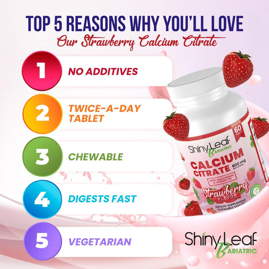 Bariatric Calcium Citrate Chewable Tablets with Magnesium & Vitamin D3 - 120 Ct, 600mg, Natural Strawberry Flavor, Vegetarian Formula