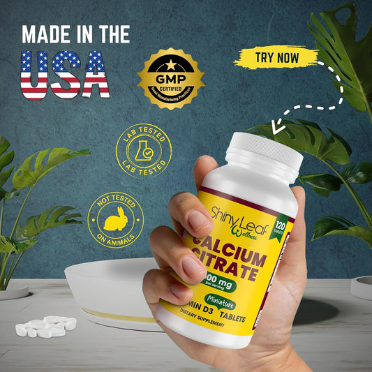 Heart, Bone, and Energy Support Bundle: Shiny Leaf COQ10 100mg, Calcium Citrate, and Vitamin D3 - 30 Chewable Tablets + 120 Caplets, 1 Month Supply
