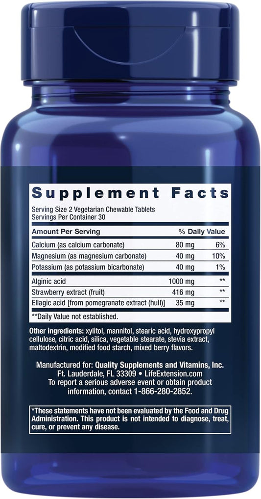 Vegetarian Esophageal Guardian with Alginic Acid & Potassium Bicarbonate for Gastric Relief - 60 Chewable Tablets, Non-GMO & Gluten-Free