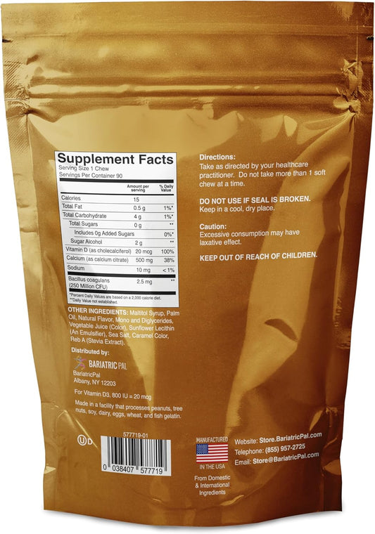 Sugar-Free Butterscotch BariatricPal Calcium Citrate Soft Chews with Probiotics - 500mg (90 Count)