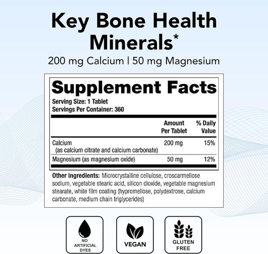 Theralogix CalMag Thins Bone Support Supplement for Women & Men - 200 mg Calcium, 50 mg Magnesium - NSF Certified - 360 Tablets