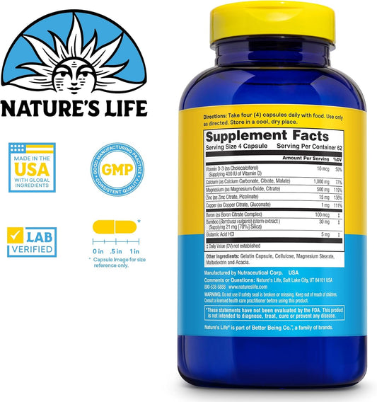High Potency Calcium Magnesium Zinc Supplement with Vitamin D and Boron - Supports Bone, Muscle, and Heart Health - 250 Capsules, 62 Servings - Nature's LifeVendor:Nature's LifeRegular price $124.63 AUDRegular priceUnit price / per-