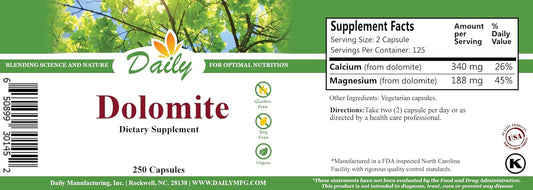 250 Capsules of Dolomite for Daily Manufacturing Benefits