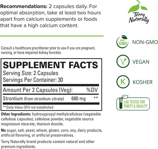 Terry Naturally Strontium Citrate Supplement - Vegan Capsules for Bone Health - 120 Capsules Total - Superior Absorption Formula
