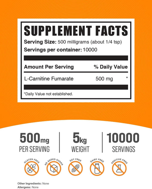 BulkSupplements.com L-Carnitine Fumarate Powder - 500mg Carnitine Supplement, Gluten Free - 5kg (11 lbs) Pack of 5Vendor:BulkSupplementsRegular price $585.01 AUDRegular priceUnit price / per