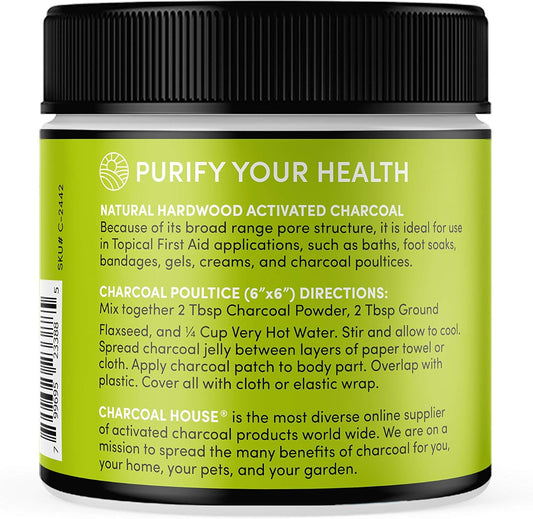 5oz Food Grade Hardwood Activated Charcoal Powder for Topical First Aid - Ideal for Cuts, Scratches, and Minor Burns