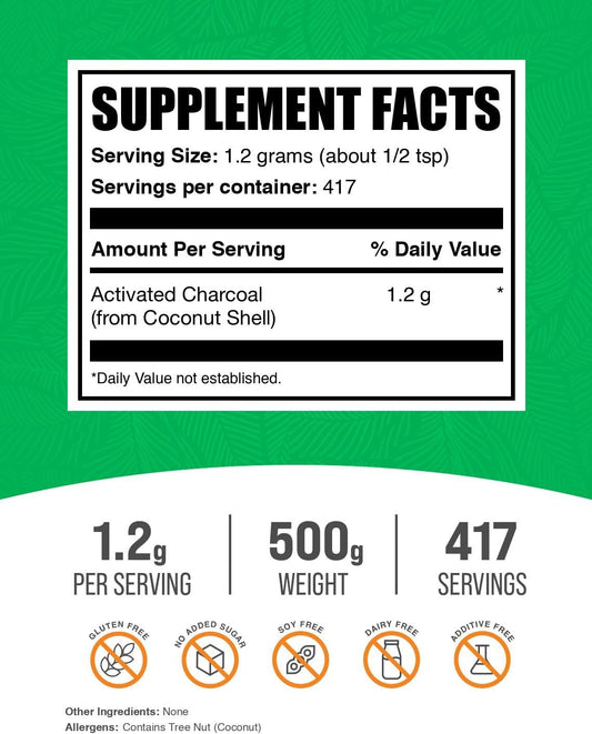 BulkSupplements.com Coconut Charcoal Powder - Teeth Whitening & Odor Absorber - Vegan & Gluten Free - 500g (1.1 lbs)