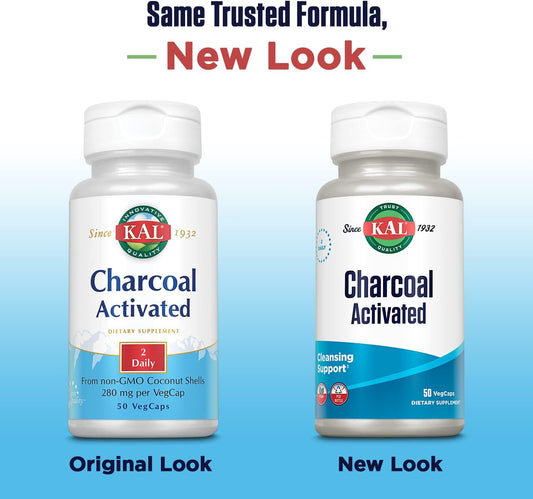 Natural Charcoal Supplement 280mg - 50 Capsules for Digestive Health