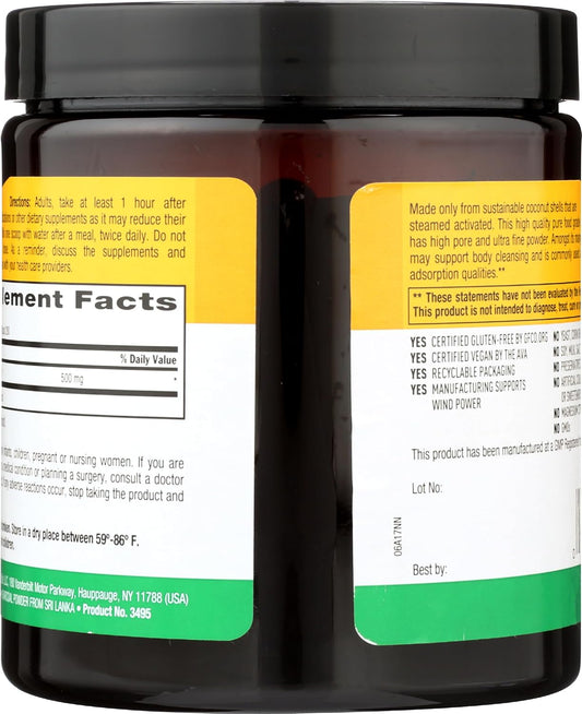 Organic Activated Coconut Charcoal Powder 500mg – Digestive Health, Gas & Bloating Relief - Non-GMO, Gluten-Free, Vegan - 5oz Powder