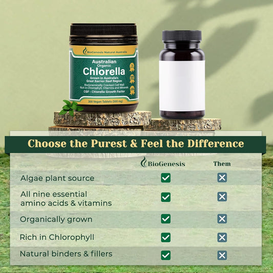Australian Biogenesis Organic Chlorella Tablets | Advanced BioDynamic Cracked Cell Wall | Chlorophyll-Rich, Vitamins, Minerals, CGF | Supports Good Health | Vegan-friendly (300 Tablets)Vendor:BiogenesisRegular price $107.37 AUDRegular priceUnit price / per-
