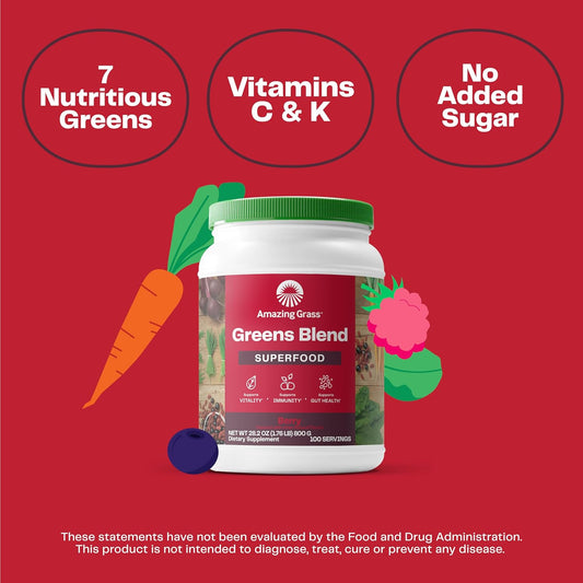 Organic Greens Superfood Powder with Digestive Enzymes & Probiotics - Berry Flavor, 100 Servings