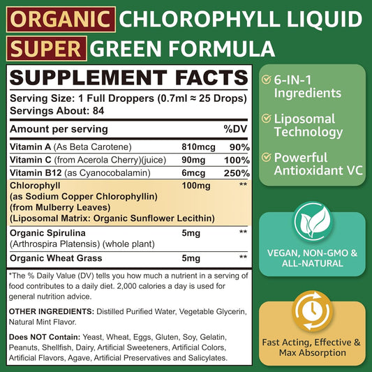 LILICARE Liposomal Chlorophyll Spirulina Drops with Wheatgrass, Vitamin C, B12, A - Internal Deodorant, Energy, Skin Health, Digestion - 2 Packs/4 Fl OzVendor:LILICARERegular price $141.93 AUDRegular priceUnit price / per-