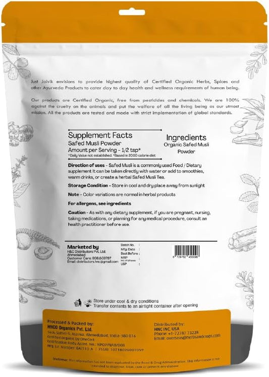 100% Organic Safed Musli Powder - Chlorophytum Borivilianum 227g (8oz) - FDA Registered Facility - Natural Health Supplement