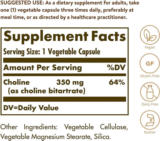 Solgar Choline 350mg 100 Vcaps - 2 Pack - Dietary SupplementVendor:SOLGARRegular price $146.19 AUDRegular priceUnit price / per-