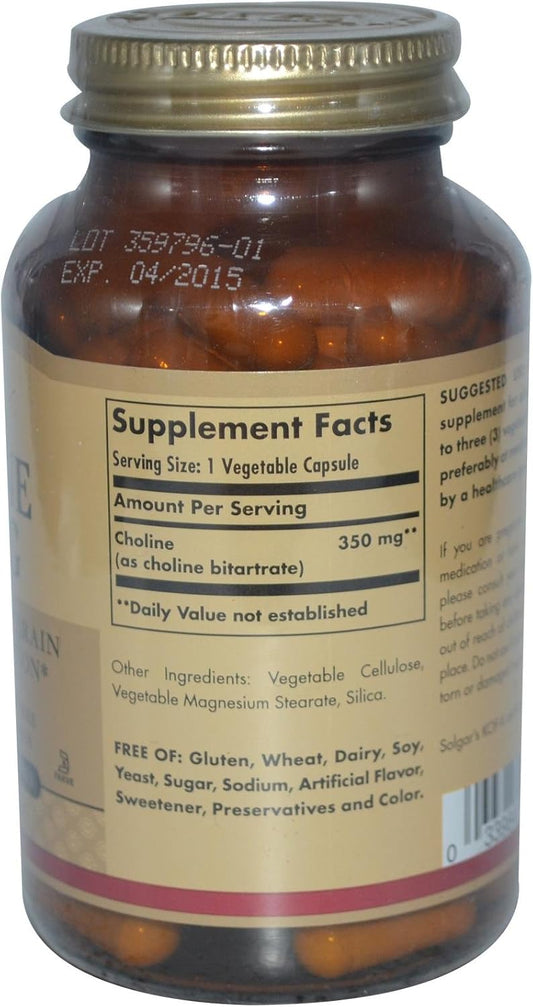 Solgar Choline 350mg Capsules - 100 Count - Vegetarian-friendly Formula