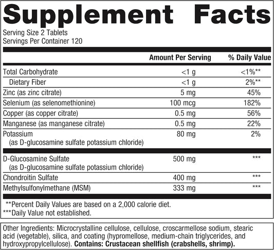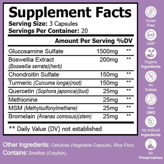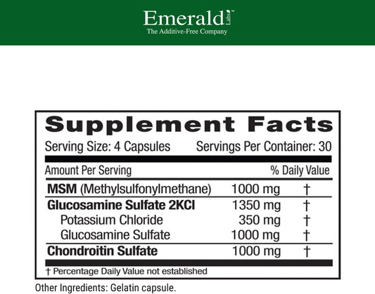 Gluten-Free Bone and Joint Health Supplement with Glucosamine, Chondroitin, and MSM - 120 Capsules