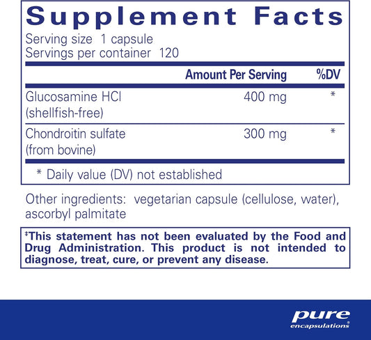 Pure Encapsulations Glucosamine and Chondroitin Supplement for Healthy Joint Function | 120 Capsules | Hypoallergenic Dual-Strength Support