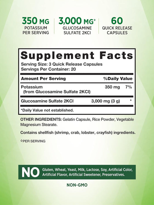 Triple Strength Glucosamine Sulfate Capsules - 3000mg, 60 Count - Non-GMO & Gluten Free Formula by Nature's Truth