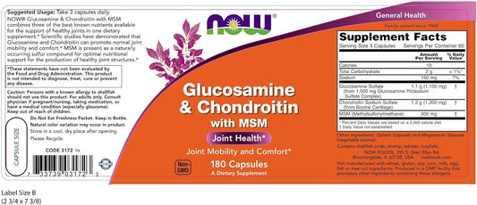 180 Veg Capsules NOW Foods Glucosamine, Chondroitin, MSM Supplement for Joint Health