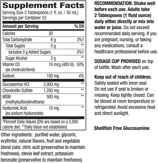 Extra Strength Glucosamine Chondroitin MSM Liquid Drops with Quercetin, Boswelia, and Bromelain - Joint & Immune Support Supplement for Adults - 2 Fl oz