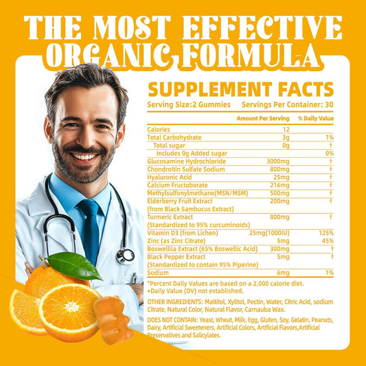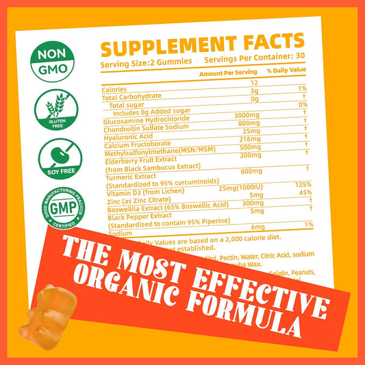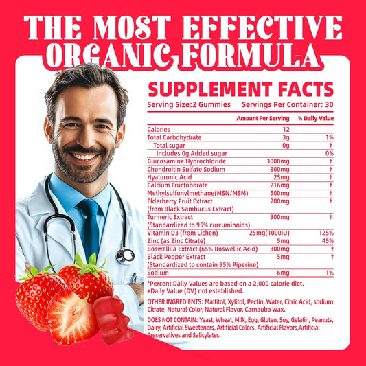 Extra Strength 3000mg Glucosamine Chondroitin Gummies with MSM & Elderberry for Joint Health & Immune Support - 60 Count Joint Supplement Gummy for Adults