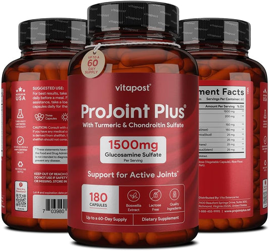 ProJoint Plus Joint Support Supplement - 180 Capsules for Mobility, Joint & Cartilage Health - with Glucosamine, Chondroitin, MSM, Turmeric, Boswellia & Bromelain - for Men & Women