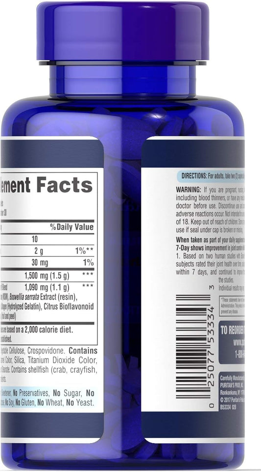 Joint Support Supplement with Glucosamine, Chondroitin, MSM & Boswellia - 60 Caplets by Puritan's Pride