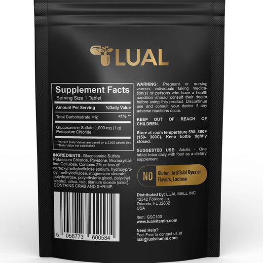 Inflammation Relief: LUAL Glucosamine Sulfate Potassium Chloride Capsules - 1000mg, 200 Count - Joint Support Supplement