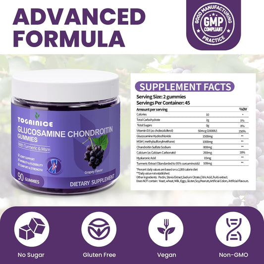 Sugar-Free Glucosamine Chondroitin Gummies - 1500mg Extra Strength with MSM, Turmeric - Joint Support for Men & Women - 90 Count