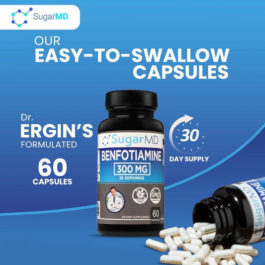 High Potency SugarMD Benfotiamine Capsules - 300 MG Supplement for Blood Sugar Support