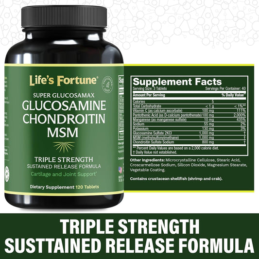 Premium Glucosamax Triple Strength Supplement - 1000mg Glucosamine, Chondroitin, MSM & Vitamin C for Joint Comfort & Mobility, 120 Tab
