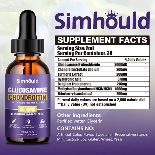 Simhould 2-Pack Glucosamine Chondroitin MSM Drops with Elderberry and Hyaluronic Acid for Joint Support & Immune Boost (4 oz)