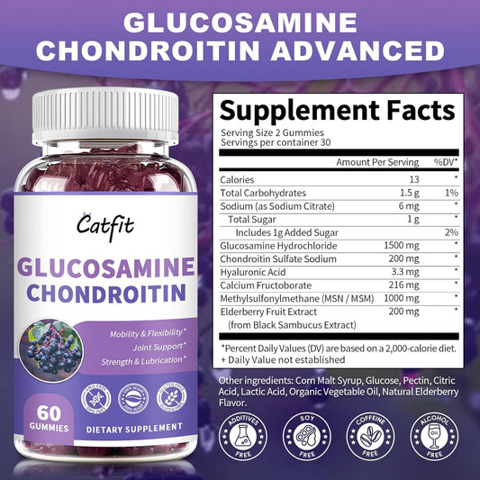 2 Pack Catfit Glucosamine Chondroitin Gummies with MSM, Elderberry - Joint & Immune Support for Adults