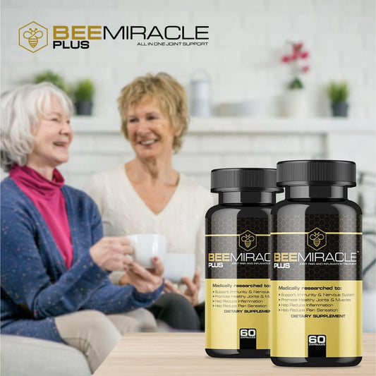 4 Pack of BEE MIRACLE PLUS Glucosamine and Apitoxin Supplement for Joint and Muscle Support with 60 Capsules